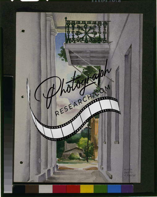 Title: [Detail of entrance of archbishopric, with balcony, New Orleans, Louisiana] / Alvyk Boyd Cruise.