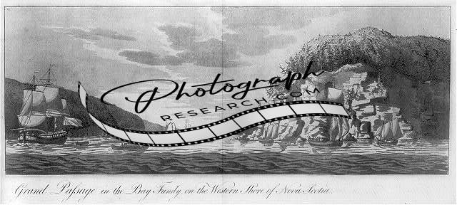 Summary: Print shows ships passing cliffs at the entrance to the Petit Passage near Digby Neck, Nova Scotia.