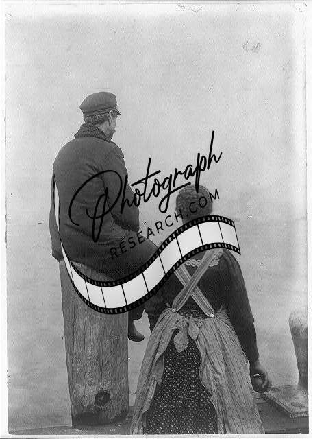 Two emigrants on the seashore,Immigration,c1912,Ellis Island,New York,NY,Dock