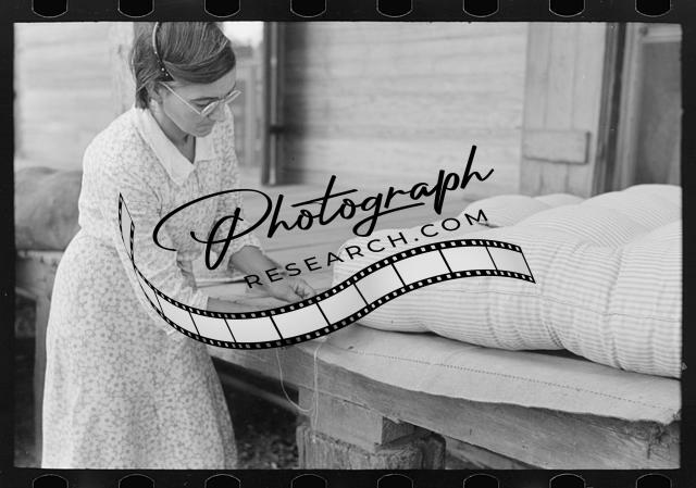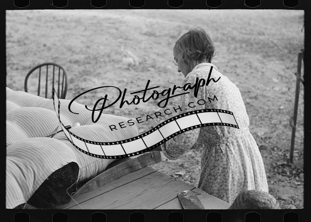 Wife of small cane farmer near Jarreau,Louisiana,making mattress of moss,FSA,1