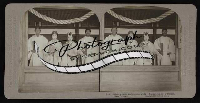 Shinto priests,dancing girls. Kasuga-no-miya Temple,Nara,Japan