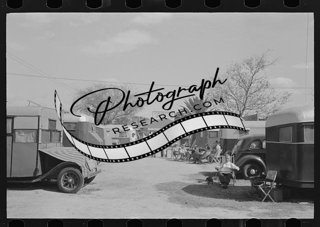 Entrance to trailer park amid the orange groves,McAllen,Texas,TX,FSA,1939