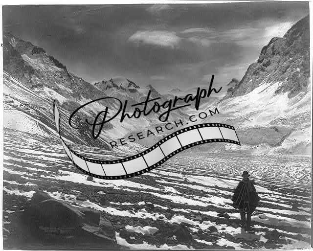 Chile. Aconcaqu valley,snowfields,1890-1923,man,mountains