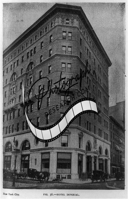 Hotel Imperial,taverns,buildings,horse drawn carriages,New York City,NY,1865