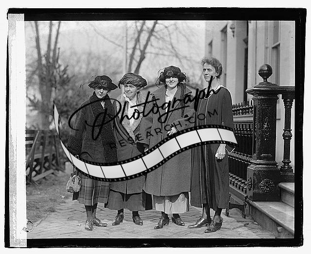 Title: Prominent women at equal rights conference at Woman's Party. L to R: Mrs. Agnes Morey, Brookline, Mass.; Miss Katherine Morey, Brookline, Mass. & State Chairman of the Woman's Party; Elsie Hill, Norwalk, Conn.; Mary Dean Powell, D.C.; Emma Wold, Portland, Oregon; Mabel Vernon, Wilmington, Del., [11/11/22]