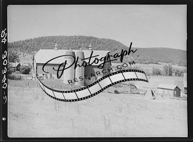 Barn,silos on farm in western Wisconsin,WI,Farm Security Administration,FSA