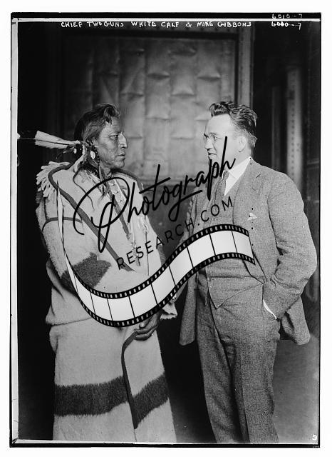 Chief Twoguns White Calf,Mike Gibbons,shaking hands,Native Americans,feathers