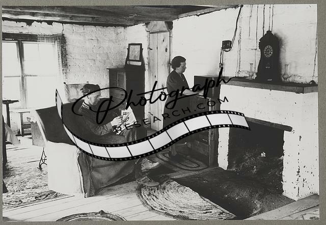 Pie Town,Catron County,NM,homesteader,wife,adobe house,interior,fireplace,1940