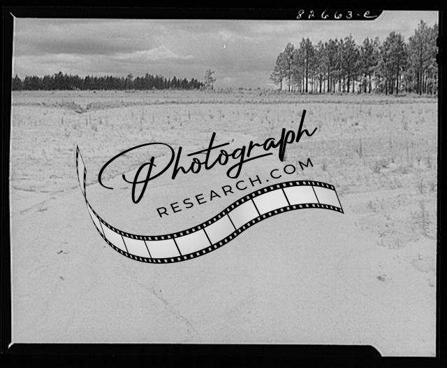 Title: Escambia Farms, Florida. Land bordering on Escambia Farms FSA (Farm Security Administration) project showing results of poor terracing and grading. The sand wash has carried away all top soil and buried what little humus there is left