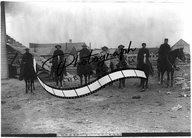 N.W. Mounted Police scouts,Macleod,N.W.T,1917,horseback,7 men