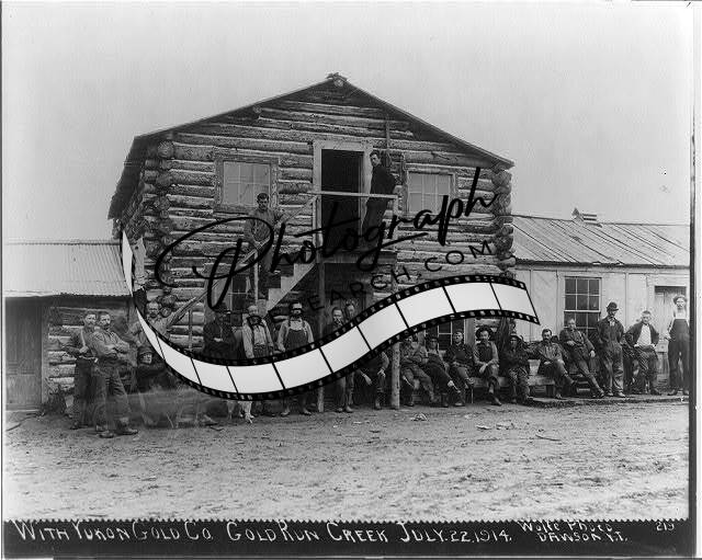 23 men posed outside Yukon Gold Co. Dawson,1914,Alaska,AK,log building