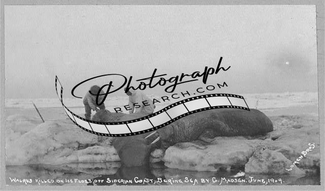 Walrus killed on Ice Floes,Siberian Coast,Bering Sea,G. Madsen,June 1909,Hunters