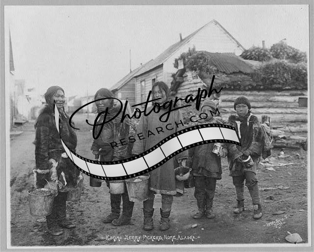 Eskimo berry pickers,Indians of North America,Nome,Alaska,AK,1900-1930