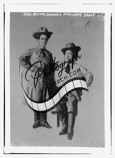 Mrs. Bessie Jenkins,Mrs. Cary Seely dressed up in cowboy outfits1910