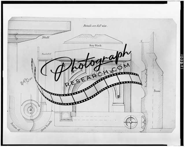 Fireplace mantel,Elevations,plan,sections,full size details,plants,JG Bruff,1880