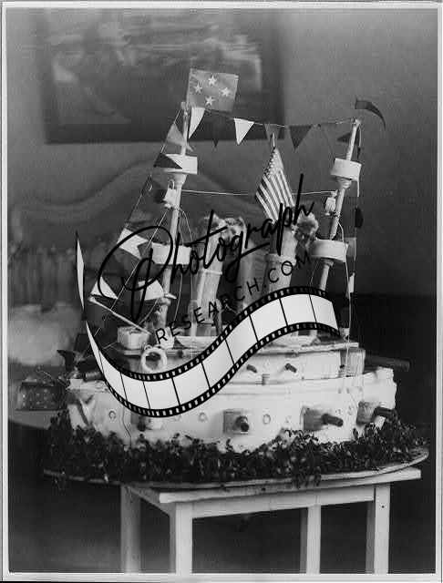 Vinson Walsh McLean with Birthday Cake from Admiral Dewey,battleship,1910s