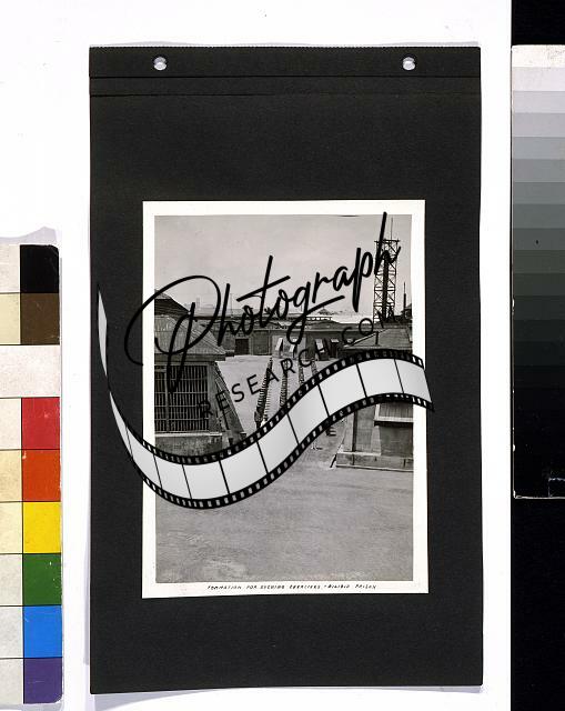 Summary: Photograph shows prisoners in formation, stretching arms out from sides, in courtyard, Bilibid Prison, Manila, Philippines.