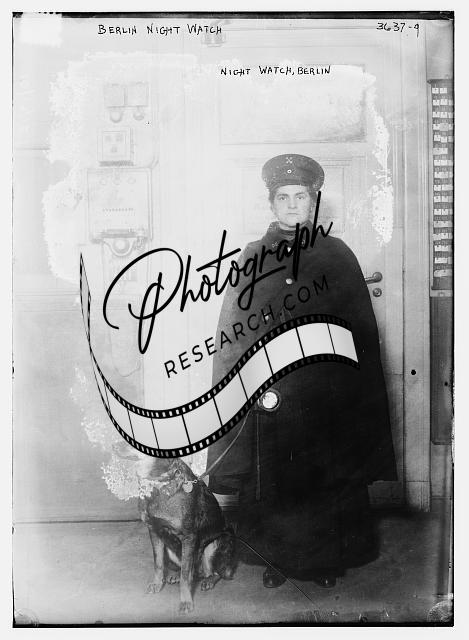 Berlin Night Watch,woman with dog and lantern,Germany,Bain News Service
