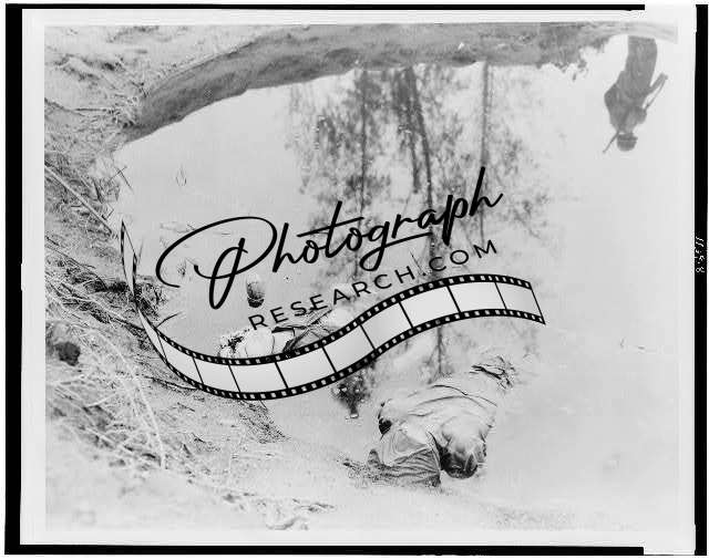 Two dead Japanese in a water filled shell hole somewhere in New Guinea,1943