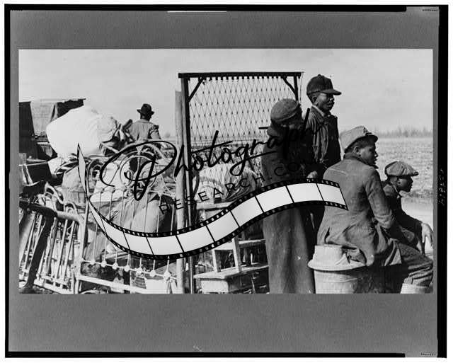 Title: State highway officials moving sharecroppers away from roadsides to area between the levee and the Mississippi River, New Madrid County, Missouri