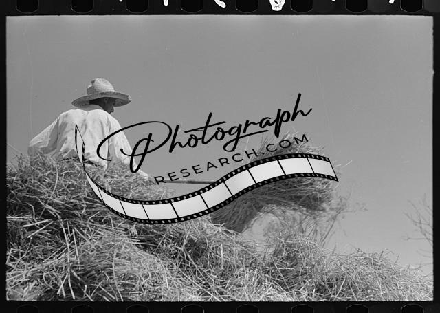Worker pitching bundles of rice near Crowley,Louisiana,LA,Farm Security Admin