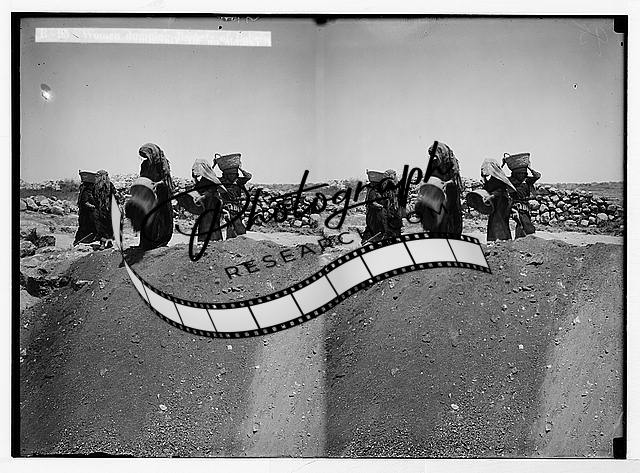 Title: Excavations at Tell el-Nasbeh, 'Mizpah?' Women carrying baskets of debris