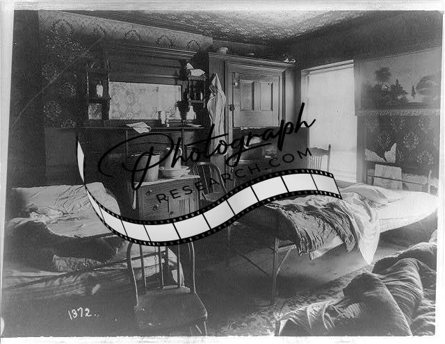 Dark,dingy room,crowded with three cots,New York City,NYC,interior,1905-1910