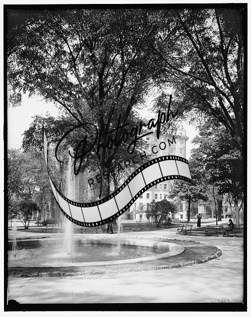 Grand Circus Park,Tuller Hotel,fountains,buildings,Detroit,Michigan,MI,1900
