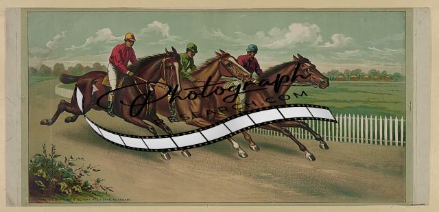 Three men on horseback racing