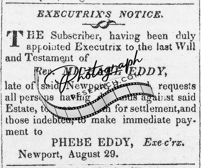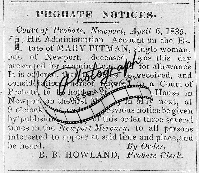 Item in: Newport Mercury. Newport, R.I. : Printed by J. Franklin, 1835 Jan. 10. (Bound volume 9658).