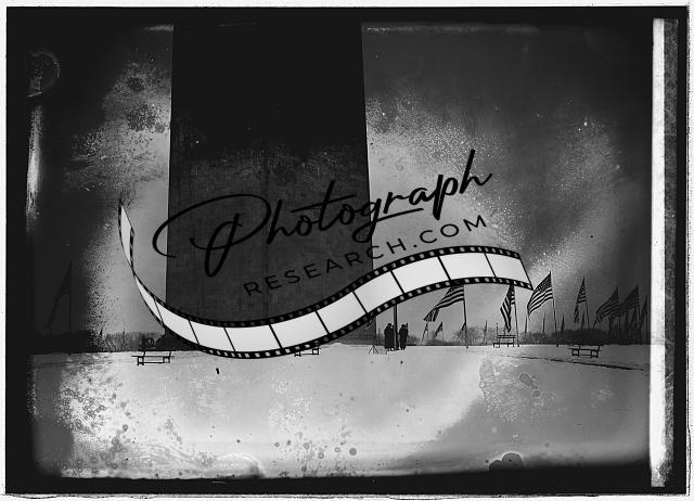 This glass negative might show streaks and other blemishes resulting from a natural deterioration in the original coatings.