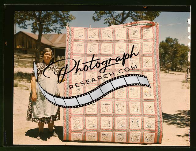 Mrs. Bill Stagg with state Quilt,Pie Town,New Mexico,NM,Russell Lee,October 1940
