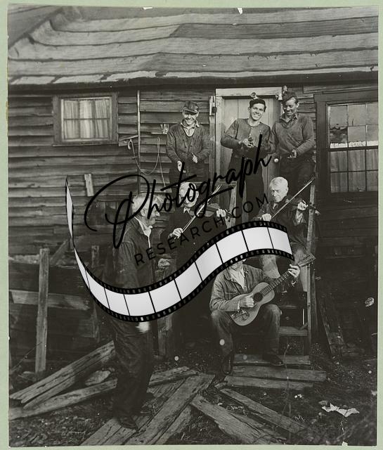 Staged hoedown,Pennsylvania,PA,anthracite miners playing fiddle,guitar,c1940