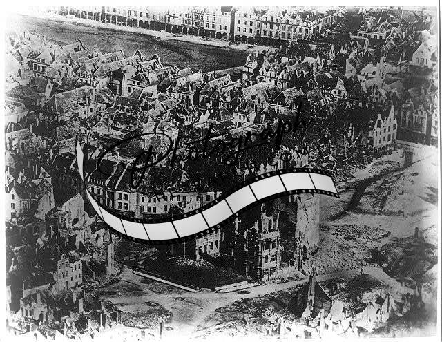 Aerial of bombed city of Arras,France,during WWI,1914-1918,World War I,buildings