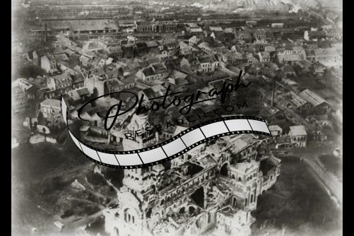 Aerial,bombed Cathedral,city of Albert,France during WWI,1914-1918,World War I