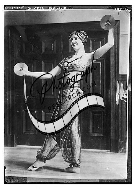 Gloria Braggiotti,in gypsy? costume,cymbals,Bain News Service,woman,barefoot