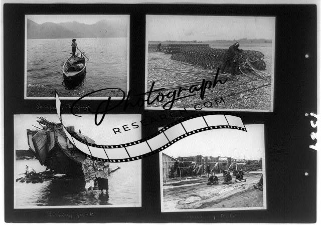 Sampan,Chuzenji,preparing embankments,fishing junk,repairing nets,1915-1925
