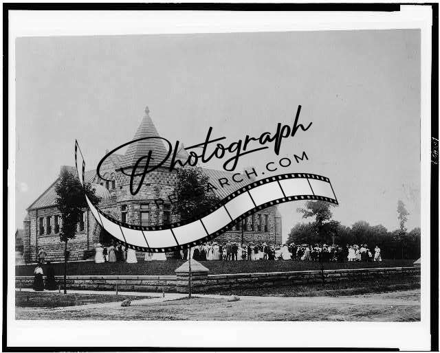 Crowd outside,library,patrons,buildings,wall,street,Jamestown,New York,NY,c1905