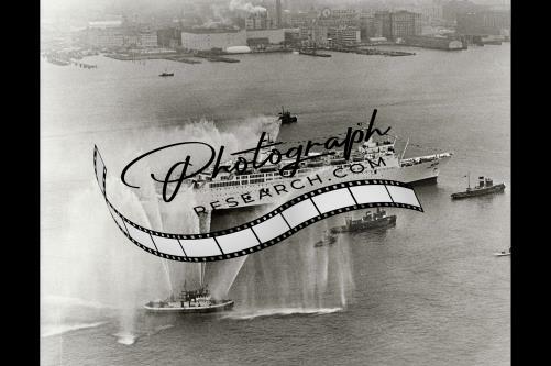 Israeli Luxury Liner,Shalom,New York City,Tugboats spraying plumes of water,1964