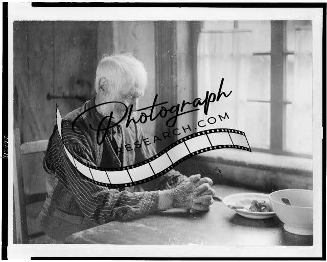 Give us this day our daily bread,Elderly Man seated at table,prayer,c1906