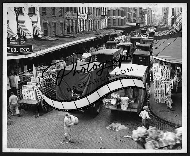 Lines of trucks being loaded with produce,Washington Market,N.Y.C.,N.Y.,1946