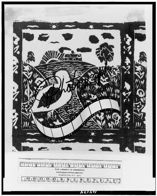 House,road,birds,children's art,prints,linocuts,artwork,Marie Dowdy,1933