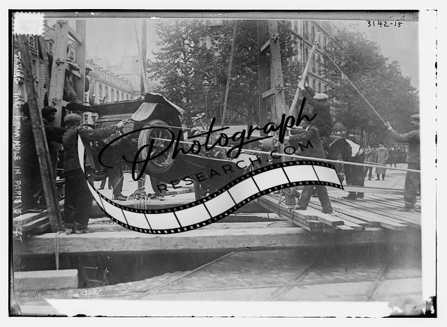 Taking Taxi from hole in Paris Street,accident,1910-1915,automobile,people