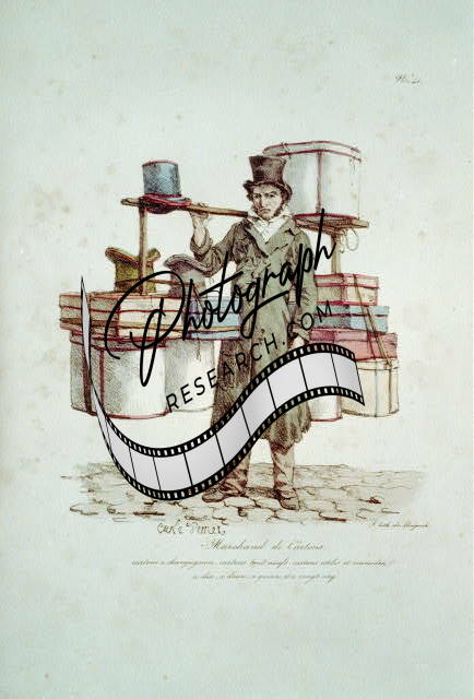 Marchand de cartons,c1822,Street vendor of boxes and hats,reproduction photo