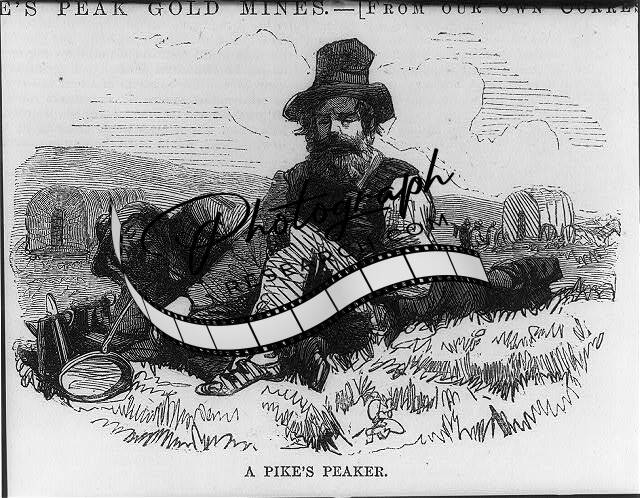 A Pikes Peaker,Gold Miner,Harper's Weekly,wagon,1859