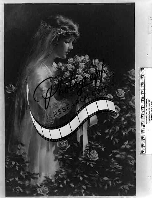 The fairest of flowers,young woman in wedding? gown,holding boquet of flowers