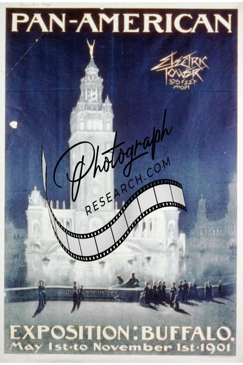 Pan-American Exposition: Buffalo,evening view,1900,neo-classical tower,fountains