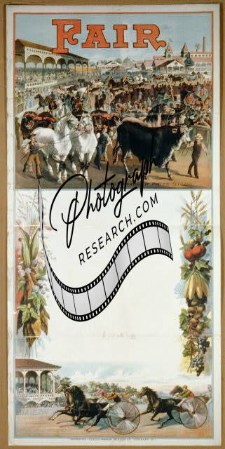 Fair,1891,viewers watch parade of stock,racecourse grandstand,animals,photograph