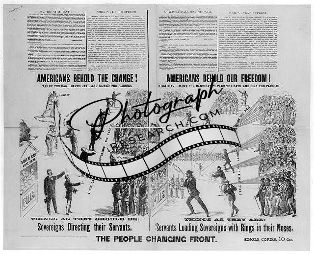 The People Changing Front,Political cartoon,servants leading sovereigns,c1872