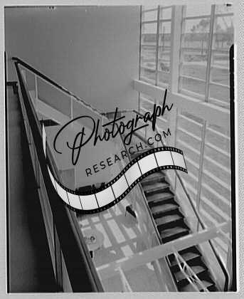 Title: Fairchild Aircraft Corporation, Bayshore, Long Island, New York. Stairway to girders